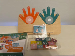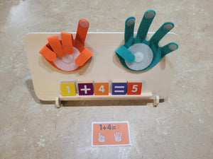 Incluye bloques de números coloridos, tarjetas didácticas y un tablero de madera.